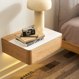 - 床頭櫃懸空:別再放傳統的實體床頭櫃了,牆上裝懸空層板或懸空小櫃,寬度40-50公分就夠放手機、鬧鐘和水杯。下方還能掛上小吊鉤,掛睡袍或帽子,地面空間留出來,打掃也更方便。